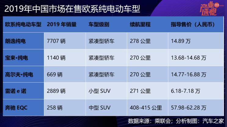 那么中國消費者會買單嗎?截止目前,歐洲車企尚未在中國大規(guī)模投放電動車型,2019年僅5款車型在售,緊湊級車型3款,小型車1款,中型豪華品牌車1款,累計批發(fā)銷量1.27萬輛。然而以寶馬和大眾在插電式混合動力板塊已經(jīng)于一年之中快速改變了中國市場的競爭格局,一旦歐系電動產(chǎn)品大規(guī)模進入,消費者大概率還是會買單的,尤其是在一二線城市。