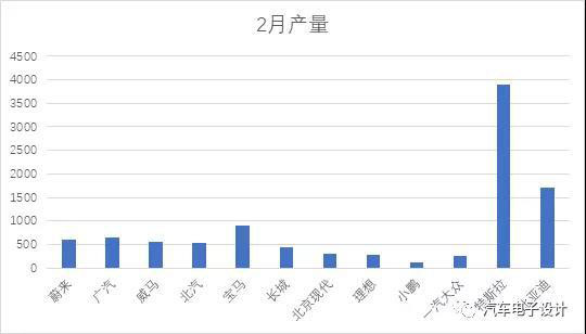 2月新能源汽車產(chǎn)量約1.19萬輛,同比下降77.4%,動力電池總量為0.6GWh,其中乘用車部分動力電池裝機量523.00 MWh,主要乘用車企業(yè)的產(chǎn)量如下圖所示。特斯拉在2月10日復(fù)工,20天生產(chǎn)近4000臺,要不是車機搞了事情,交付暫停,整個上量還是很快的;按照這個形勢來看,特斯拉3月份的產(chǎn)量可能會進一步拉高到5000-6000左右,帶動電動汽車的產(chǎn)量慢慢繼續(xù)爬坡。