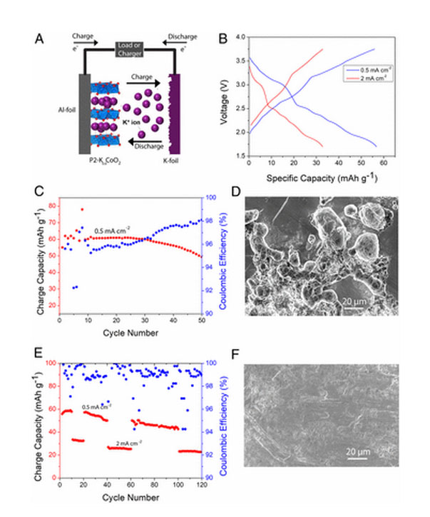 鉀既便宜又豐富,往往易于使用,這意味著制造成本和材料成本都較低。使用全鉀金屬陽(yáng)極,可以制造出與鋰所提供的能量密度相匹配的電池。