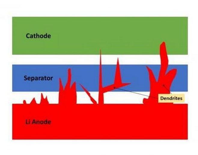 到目前為止,鋰電池中也存在一個(gè)問(wèn)題:枝晶生長(zhǎng)。隨著時(shí)間的流逝,隨著電池一次又一次地充電和放電,少量金屬(醚鋰或鉀)開(kāi)始將自身附著到陽(yáng)極上。這不是均勻發(fā)生的。逐漸形成了少量的枝晶(一種樹(shù)狀晶體),最終它們長(zhǎng)到足以刺穿將陽(yáng)極與陰極隔開(kāi)的絕緣膜,并使電池短路。這會(huì)導(dǎo)致熱量積聚并偶爾起火,并有效縮短電池的使用壽命。