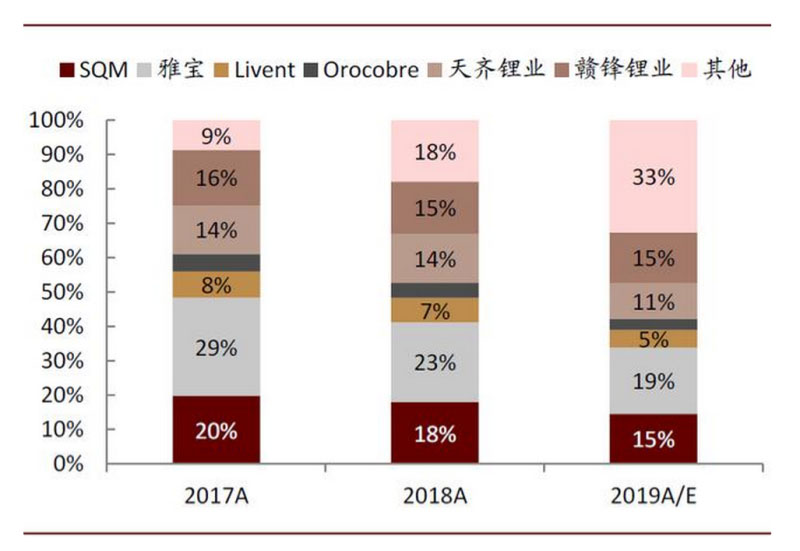 圖表: 全球鋰鹽供給拆分(按生產(chǎn)商)