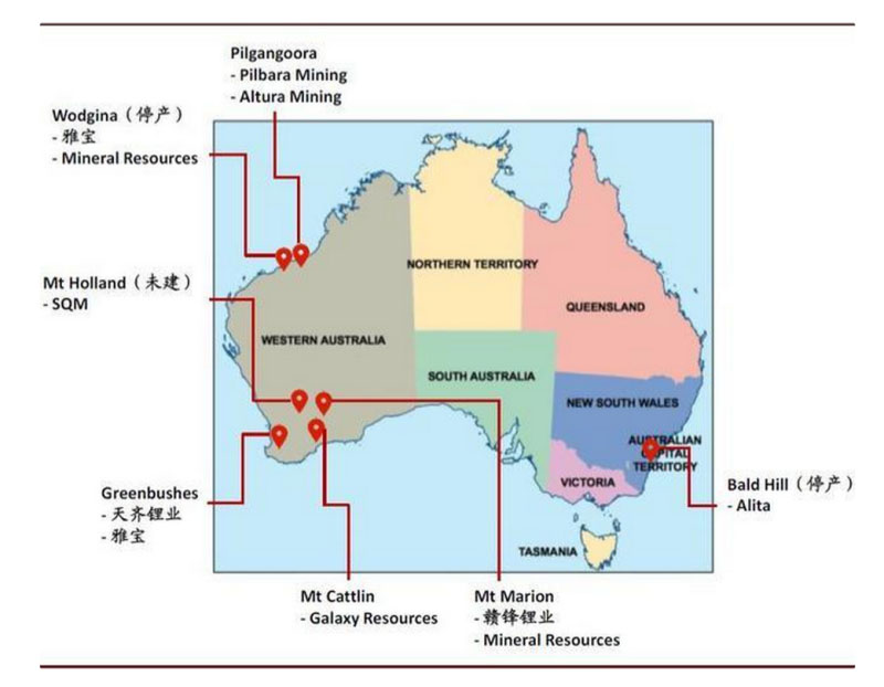 圖表: 澳洲鋰礦山地理分布