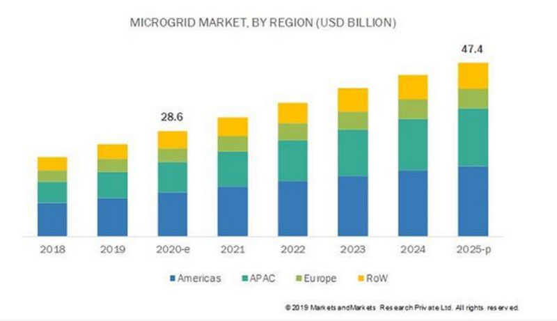 國際市場研究機構Markets and Markets日前發(fā)布的報告顯示,2020年全球微電網(wǎng)市場規(guī)模將達到286億美元,到2025年這一數(shù)據(jù)將增至474億美元,期間年復合增長率約為10.6%。