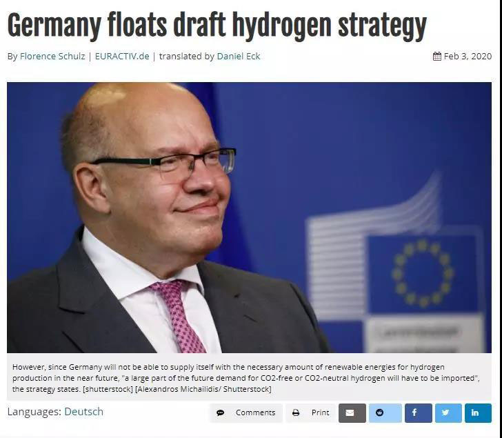 德國經(jīng)濟部長彼得·阿爾特邁爾(Peter Altmaier)主導制定的國家氫戰(zhàn)略草案已經(jīng)送交德國多個部委征求意見,力爭到2030年德國至少20%的氫將由可再生能源生產(chǎn),即所謂的綠色氫。