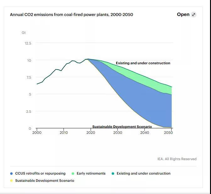 如何減少現(xiàn)有煤電廠的排放?我們考慮三種選項:1)用碳捕獲、利用和儲存(CCU)或生物質(zhì)共燒技術(shù)來改造它們;2)讓煤電廠專注于提供系統(tǒng)的足夠性和靈活性,同時減少發(fā)電運營時間:3)或者提前退役。在可持續(xù)發(fā)展的情景分析下,現(xiàn)有的2080 GW燃煤fadw容量中的大部分將受到上述三個選項中的一個的影響。