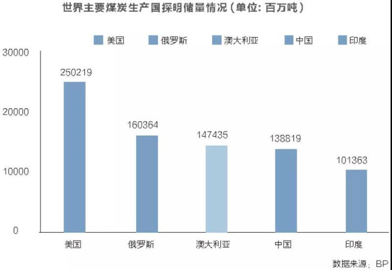 根據BP《世界能源統(tǒng)計年鑒(2019)》,目前澳大利亞是世界第三大煤炭探明儲量國,第五大世界煤炭生產國。