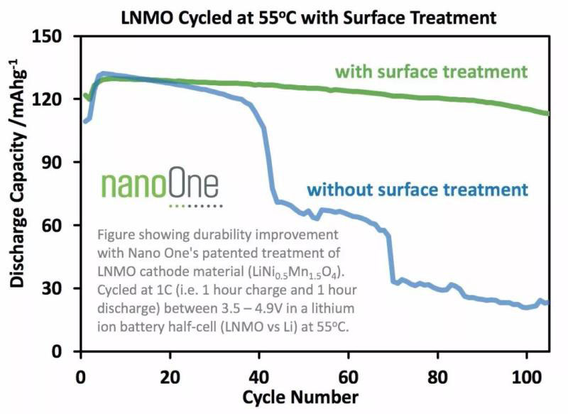 Nano One首席技術(shù)官Stephen Campbell博士說:“對Nano One的專利產(chǎn)品組合而言,這是對LNMO的一項(xiàng)重要的,低成本的耐用性改進(jìn)?!?