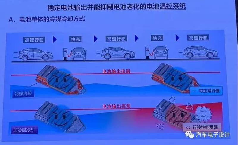 如下圖所示,這里有冷媒介入冷卻和冷媒不介入的兩種方式,可以和之前的歐藍德PHEV電池的設(shè)計可以比較,下面這個是一種極端的使用工況。