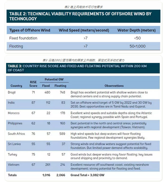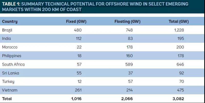 表1 沿海200公里新興市場海上風電技術(shù)潛力概述