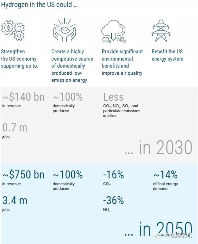 圖1 在雄心勃勃的情景下,氫能在美國的潛在效益