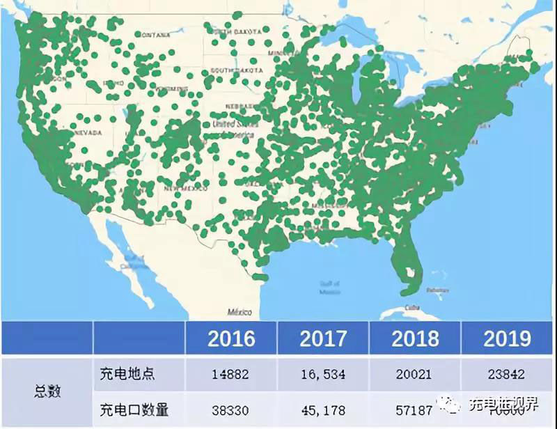 1. 美國的充電設(shè)施情況按充電設(shè)施地點來看目前已經(jīng)達(dá)到了2.38萬個,超過7萬個充電接口,這里有相當(dāng)一部分是交直流都可以接的,如果直接計數(shù)整個充電的接口量則會超過8.1萬個。