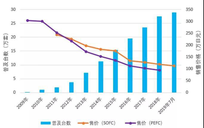 圖2 日本家用燃料電池銷售數(shù)量及價(jià)格