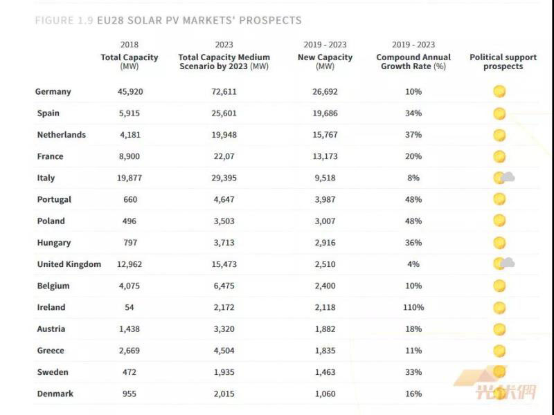圖表:歐盟28成員國新增光伏裝機預(yù)測(2019-2023)來源:Solar Power Europe