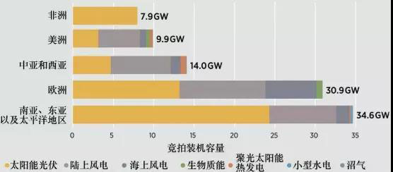 圖片:全球各地區(qū)競拍裝機容量分布