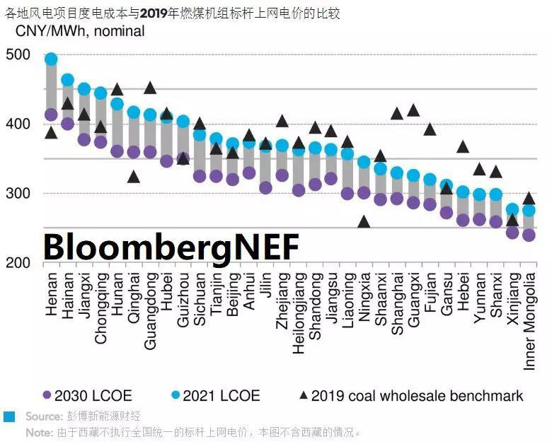 到2030年,27省新核準(zhǔn)的陸上風(fēng)電項(xiàng)目成本將低于燃煤機(jī)組標(biāo)桿上網(wǎng)電價(jià),比2021年預(yù)計(jì)可實(shí)現(xiàn)平價(jià)條件的省份增加八省。河南、青海和寧夏仍有平價(jià)難度。