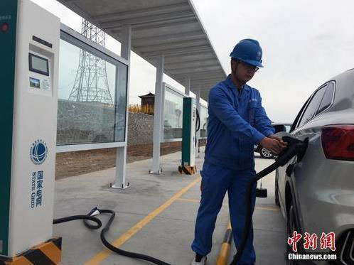 資料圖。青海湖畔首座電動汽車充電站投運。中新社記者 羅云鵬 攝