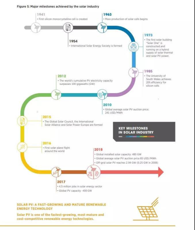本周二(11月12日),在秘魯首都利馬舉行的2019年世界太陽能大會(huì)上,可再生能源機(jī)構(gòu)IRENA發(fā)布新的分析報(bào)告《光伏的未來》,敦促各國(guó)政府降低政策、經(jīng)濟(jì)、監(jiān)管和技術(shù)壁壘,使全球太陽能裝機(jī)量在2018年達(dá)到480GW,2030年達(dá)到2.84TW,2050年達(dá)到8.5TW(8500GW),全球才有機(jī)會(huì)抵御最嚴(yán)重的全球性氣候變暖問題。
