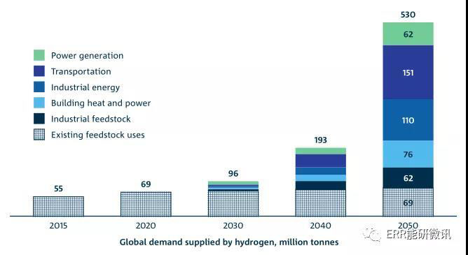 氫能理事會對2050年氫需求增長的預(yù)測