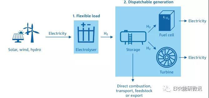 由電力和水生產(chǎn)氫氣的電解裝置提供了一個快速響應(yīng)負(fù)載,非常適合后續(xù)間歇性可再生能源發(fā)電。作為電力負(fù)荷,電解裝置可以進(jìn)行快速的升降而不產(chǎn)生任何后果,從而為電網(wǎng)的頻率控制服務(wù)做出貢獻(xiàn)。一旦生產(chǎn)出來,儲存的氫可以用于渦輪機(jī)或燃料電池來發(fā)電。這些能力將有助于國家電網(wǎng)的恢復(fù)能力。