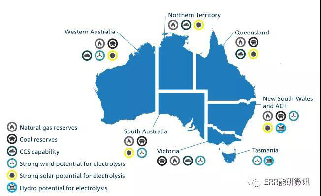 橫跨澳大利亞各州和轄區(qū)氫生產(chǎn)的能源資源選擇