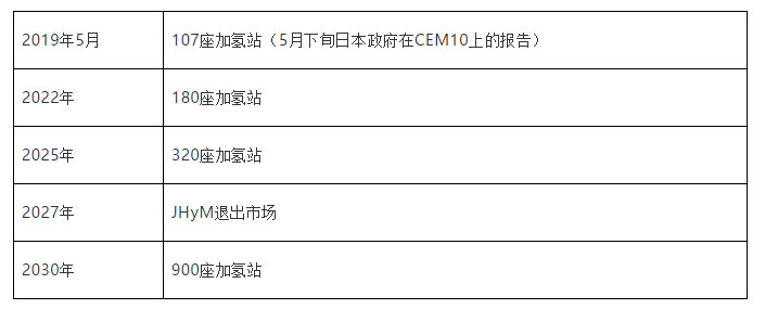 加氫站的部署也遵循上述的方法,JHyM可以設想為一個財團,幫助部署公共加氫站(HRS)直到大約2027年,此后它將被解散,不再被需要。JHyM有關加氫站時間表如下: