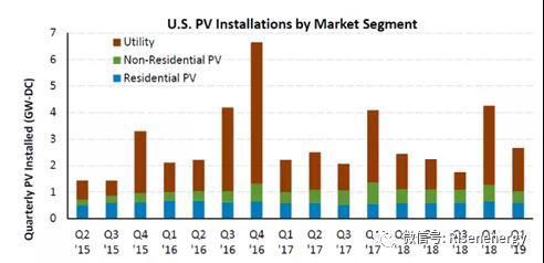 2019年上半年,美國光伏新增裝機占總新增裝機量36%,光伏是繼天然氣之后最大的可再生能源增長極。