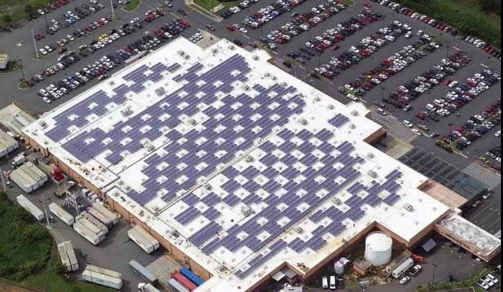 圖片:鋪設(shè)在沃爾瑪超市屋頂?shù)奶柲馨l(fā)電系統(tǒng)