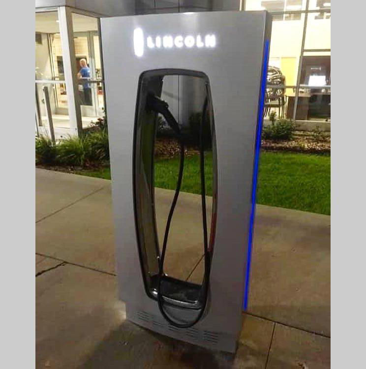 中國(guó)儲(chǔ)能網(wǎng)訊:日前有外媒在海外拍到福特集團(tuán)旗下林肯品牌的超級(jí)充電樁,該充電樁外表酷似特斯拉的超級(jí)充電樁,不過林肯的充電樁最大充電功率還未知。