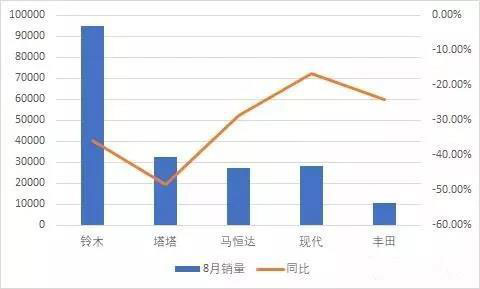 今年以來印度汽車市場表現(xiàn)令人乍舌。8月,當(dāng)?shù)厥袌鲣N量下滑41%,這已是印度汽車市場連續(xù)第10個(gè)月銷量下滑。塔塔汽車作為印度最大的汽車公司降幅最大,下降了48.4%到3.23萬臺。