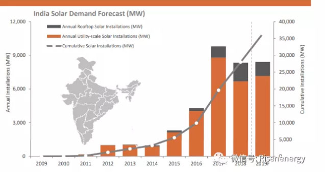 中國儲(chǔ)能網(wǎng)訊:根據(jù)Bridge to India 最近發(fā)布的印度太陽能市場(chǎng)報(bào)告,印度2019年新增裝機(jī)量預(yù)計(jì)與2018年持平,為8.3GW左右。