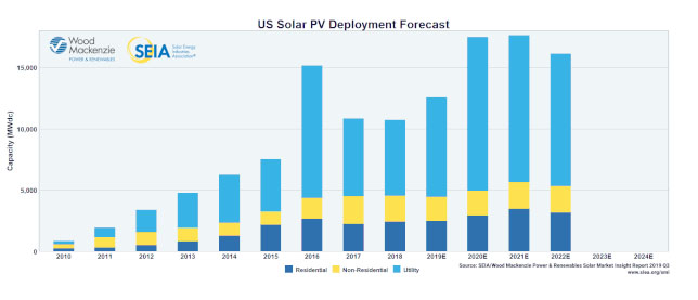 2019年美國光伏裝機(jī)將實(shí)現(xiàn)17%的同比增長,預(yù)計(jì)裝機(jī)為12.6吉瓦。