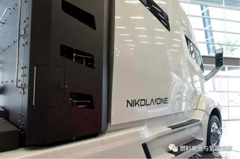 該公司總部的大廳里,一輛Nikola卡車(chē)駕駛室后面的氫氣燃料箱