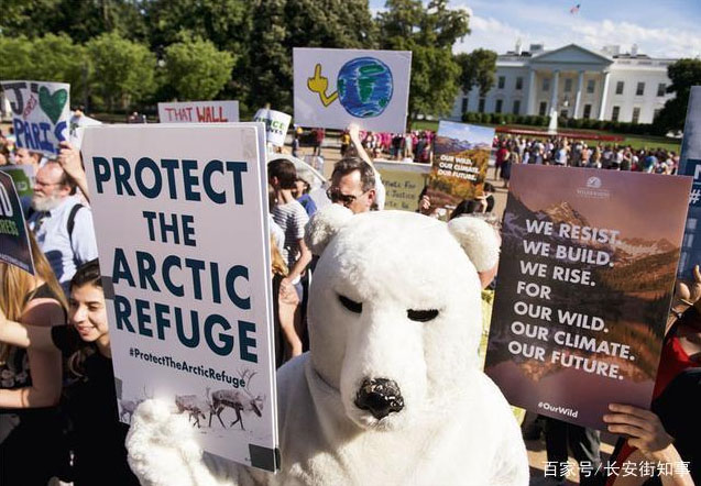 環(huán)保人士在白宮外抗議特朗普的環(huán)境政策