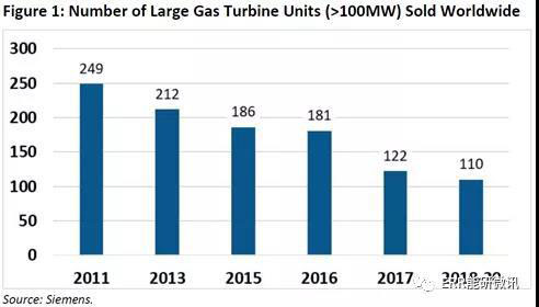 通用電氣對未來燃氣輪機銷售的賭注是一個代價高昂的錯誤,其中包括2018年的230億美元減值費用。這一損失基于錯誤的假設(shè),即燃氣和燃煤電廠的需求將繼續(xù)增長。隨著全球?qū)Υ笮吞烊粴鉁u輪機的需求在2017和2018年急劇下降,通用電氣的燃氣輪機組銷量同比下降60%,從2017年的102個降至到2018年的42個。
