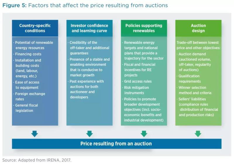 那么,具體是哪些原因?qū)е铝烁鲊?guó)光伏電站競(jìng)標(biāo)報(bào)價(jià)差別呢?國(guó)際可再生能源署歸納了以下四類因素: