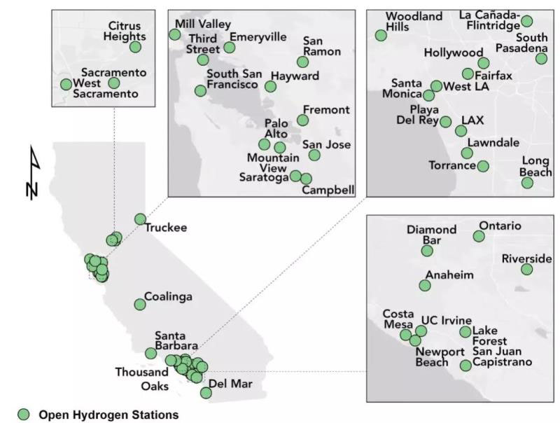 (加州當(dāng)前加氫網(wǎng)絡(luò)布局)