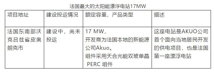 法國最大的太陽能漂浮電站17MW