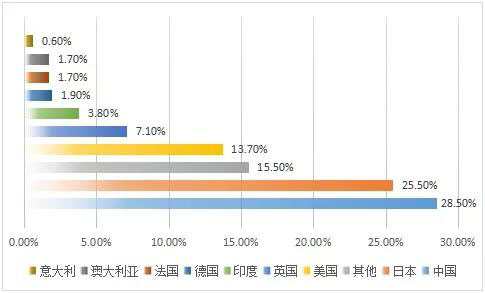 2015年全球光伏新增裝機(jī)容量地區(qū)分布(單位:%)