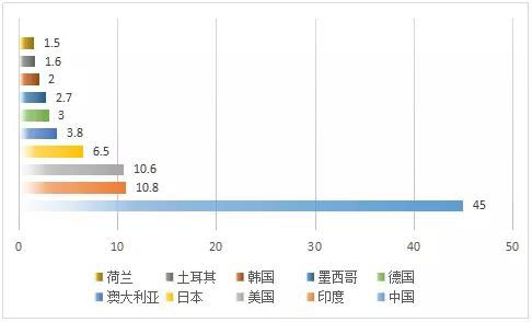 2018年全球光伏新增裝機(jī)前十國家(單位:GW)