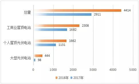 2017-2018年荷蘭光伏累計裝機(jī)(分類型)量(單位:MW)