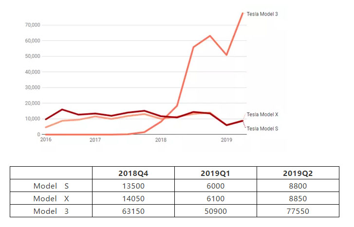 7月2日,特斯拉公布2019年第二季度交付量創(chuàng)下新紀(jì)錄。截至6月30日的三個(gè)月中,特斯拉在全球范圍內(nèi)一共交付95,200輛電動(dòng)車,較第一季度銷量環(huán)比大增51.1%,并打破其2018年第四季度創(chuàng)下的交付紀(jì)錄(90,700輛)。