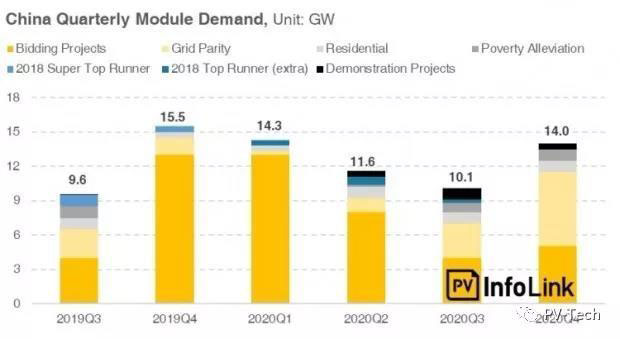 光伏市場研究公司PV InfoLink預計,盡管2019年的需求低于預期的33.6GW,但中國2020年的需求或會達到50GW。