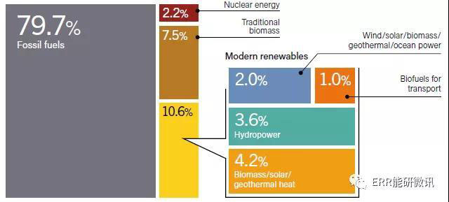 可再生能源的進(jìn)展仍然集中在電力部門,相較之下在供暖、制冷以及運輸部門的增長要少得多。