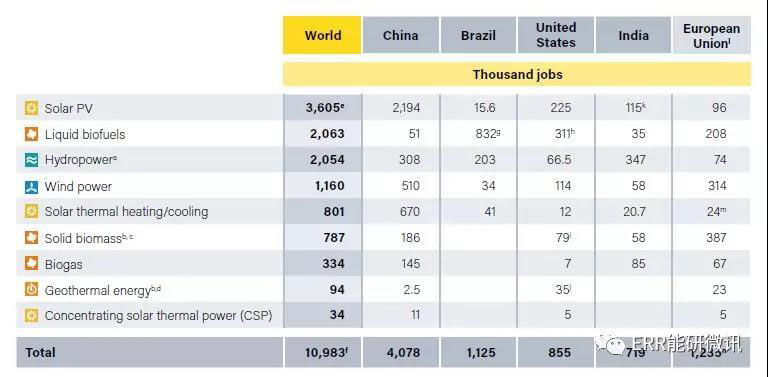 2017~2018年預(yù)估的可再生能源直接和間接就業(yè)機(jī)會(按國家/地區(qū)和技術(shù)劃分)