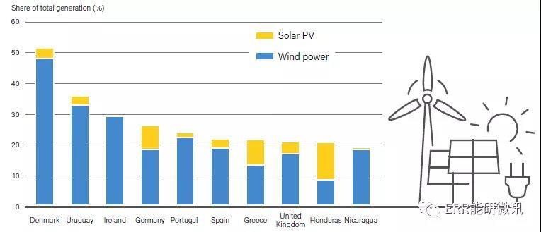 2018年間歇性可再生能源發(fā)電占比最高的10個國家