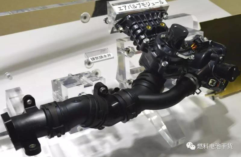 Mirai燃料電池汽車上為燃料電池堆提供氫氣、氧氣和冷卻水的管路由豐田紡織提供。鋁合金和有拉伸特性的樹脂通過注塑成形(insert molding)方法制備更加輕薄。