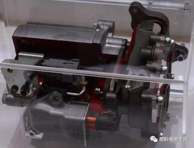 為了將電堆陽極出口出沒有參與內(nèi)部電化學(xué)反應(yīng)的氫氣再次循環(huán)至電堆,提高燃料利用率和優(yōu)化水管理,豐田自動織機(jī)開發(fā)了氫氣循環(huán)泵,該氫氣循環(huán)泵的高效工作使得Mirai燃料電池汽車取消了加濕器,這在全球尚屬首次。