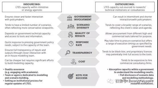 政府也可以選擇將所有或部分場景開發(fā)工作外包給一個或幾個研究/技術機構或咨詢公司。芬蘭、德國和日本的情景開發(fā)基本上都以這種模式為主。獨立的能源機構或技術機構可以成為分配情景建設能力和促進內部能力建設的中間選擇。巴西和荷蘭的做法就是這方面的例子。