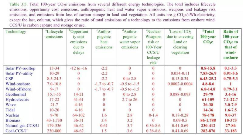 但是,如果考慮各類發(fā)電技術(shù)的建設(shè)周期所帶來的“機(jī)會(huì)成本”(以陸地風(fēng)電、地面光伏為標(biāo)桿,核電的建設(shè)周期長5到17年,成本要高2.3-74倍,因此核電低碳的效益大大低于風(fēng)電光伏)以及其他因素,那么各類發(fā)電技術(shù)全生命周期的度電碳排放如下: