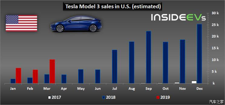 就純電動(dòng)細(xì)分市場來說,特斯拉3月份的市場份額為75%,這主要是源于Model 3的高銷量貢獻(xiàn);在美國市場,特斯拉Model 3的銷量為10175輛。就保有數(shù)據(jù)來看,特斯拉在美國已累計(jì)銷售38.1萬輛,其中Model 3是最暢銷車型,累計(jì)銷量超過16.3萬輛。